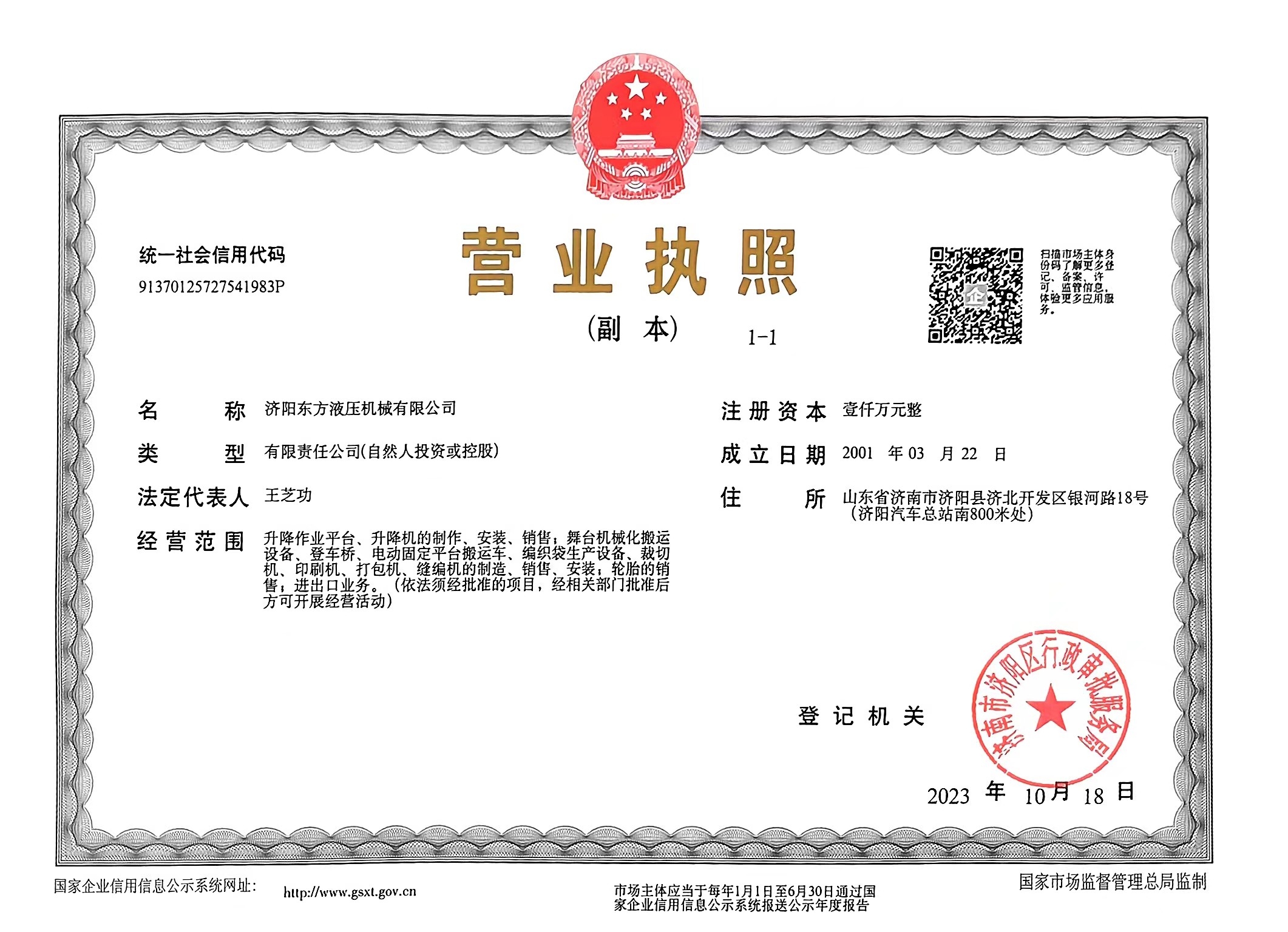 济阳东方液压机械有限公司注册时间2001年3月22日,公司至今有二十多年的生产制造经验,现已获得高新技术企业专精特新等证书;是集设计、制造、销售、安装、售后服务于一体的现代化综合企业,公司专业制造升降机.升降平台.液压升降平台.移动升降机.全自行升降平台.汽车升降平台.铝合金升降机.导轨式升降机.剪叉式升降平台.汽车升降机.登车桥.液压登车桥.移动登车桥.固定登车桥等生产设备满足国内外客户需求!